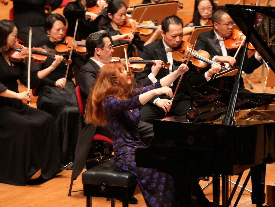 诞生最早的《g小调钢琴协奏曲》以朴实厚重的质感和浓郁的民族风情独树一帜。作品中,钢琴与乐队并非“独奏与伴奏”,而是平等对话的伙伴——有时钢琴甚至会为乐队“托底”。陈萨将这种协作形容为“如同演奏室内乐,需要双方时刻聆听、彼此呼应”,她的演绎也精准传递出这份细腻的互动感。