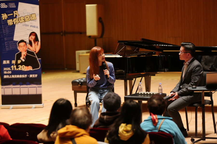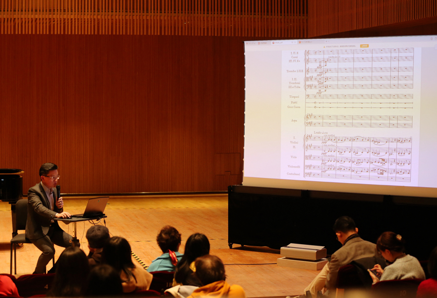 孙一凡带观众“读总谱”(蔡磊磊 摄)