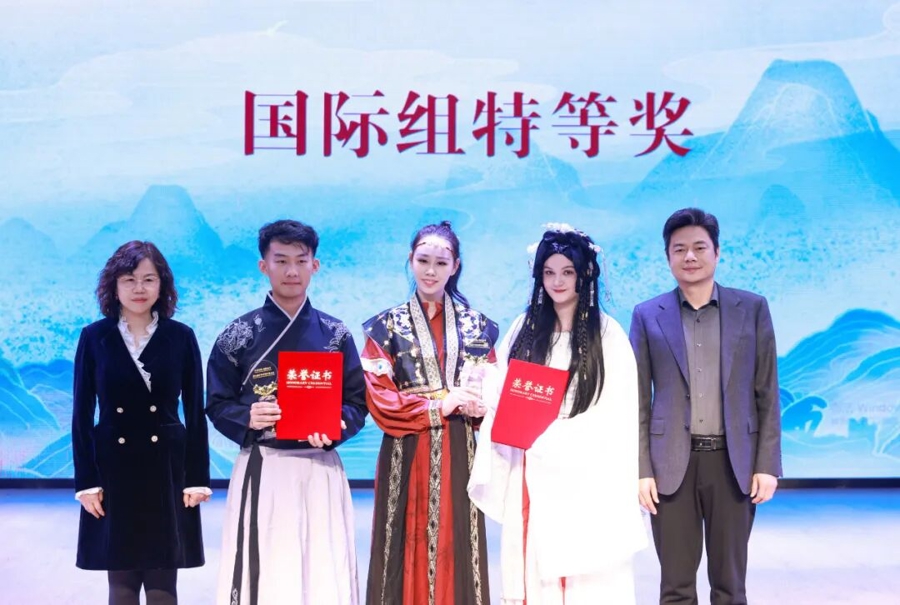 上海应用技术大学(老挝留学生)《相思》和欧亚国立大学(哈萨克斯坦)《西湖烟雨·东方剑影》获得国际组特等奖